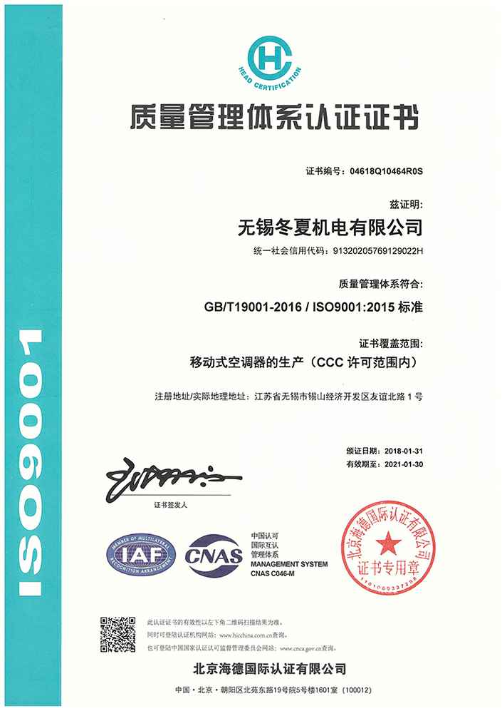 近日,星空公司网站网页版入口-星空(中国)荣获ISO9001认证。这标志着我司已步入规范化、标准化、科学化的现代企业管理轨道。