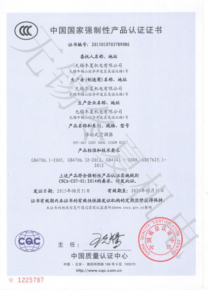 近日,星空公司网站网页版入口-星空(中国)的移动工业冷气机、暖风机产品7个型号取得了中国质量认证中心颁发的3C强制认证证书。